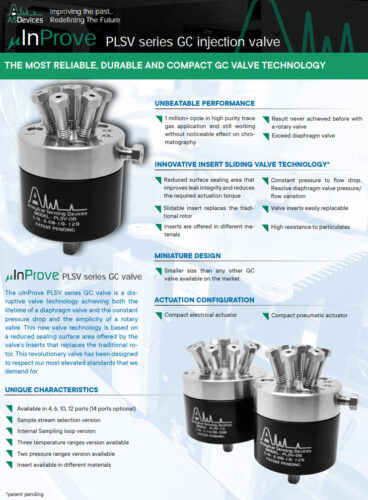 We have tested pretty much all existing GC valves (Valco, Siemens, Yokogawa, ABB, AFP) and spent decades reviewing existing valve designs to improve them. The output is over 30 patents to improve lifetime, reduce leaks and dead volume, etc. We were able to improve valve leak integrity for traditional conical rotary and diaphragm valve technologies. All valves leak or will leak at some point but what matters is leak level and rate. The ultimate challenge was to design a valve with longer lifetime, less wearing and that can manage inevitable leaks without impacting the chromatographic performance. This is the purpose of our PLSV technology.