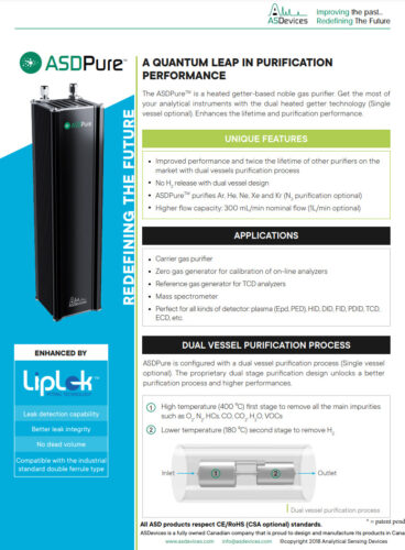 Our argon quality analysis solution is the most compact on the market. Thanks to ASDevices high quality components, it delivers unsurpassed performance and all the features required for industrial gas manufacturers or any other application that needs argon quality analysis. Our proprietary enhanced plasma discharge (Epd) sensing technology, that can be used with argon carrier gas, combined with our simple chromatographic process, improves robustness and reduce overall operational cost.