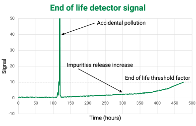 • 第一台带有实时寿命(Eol)检测器的纯化器